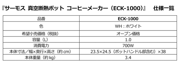 ◆サーモス 真空断熱ポット コーヒーメーカー(ECK-1000)製品特長