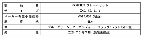 リムブレーキモデル最軽量590gを実現し、より速く、より快適に走れる 新「CARBONEX(カーボネックス)」 2024年3月下旬より発売