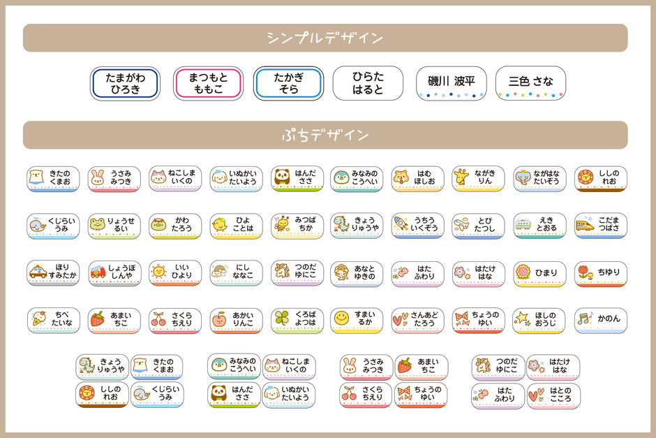 『毎日のお仕事や育児に追われている、パパ・ママのお手伝いが少しでもできれば…』という想いで、22年にわたり、お名前シールをはじめ名入れ商品の販売を通じて、仕事や育児に多忙な保護者のみなさまの入園・入学準備のお手伝いをしてまいりました。これからもさまざまなアイデアを発信し、名前つけをラクに楽しく、使う人々が笑顔になるアイテムを作り続けてまいります。