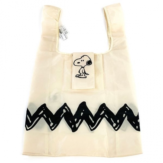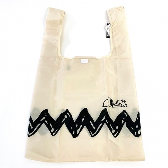 こちらはシンプルなギザギザ模様のエコバッグ♪この模様と言えば、チャーリーブラウンのTシャツですよね。いつもはイエローカラーですが、こちらはアイボリーのヴィンテージ感に、スヌーピーがデザインされています。