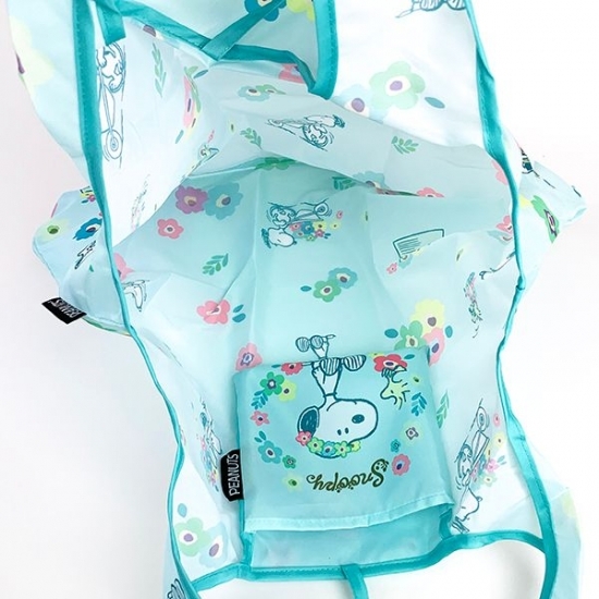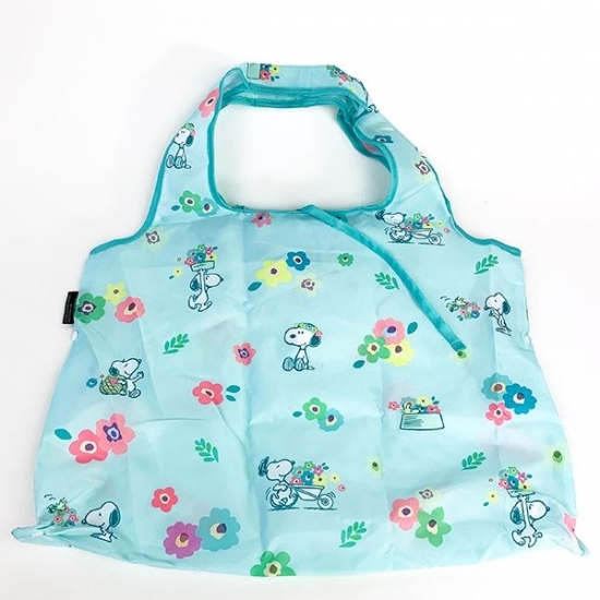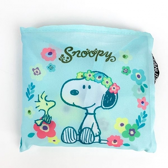 お花に囲まれたラブリーなスヌーピーのエコバッグも登場しました。ブルーの色調もキュートですよね。可愛いものが好きな人には、オススメですよ。