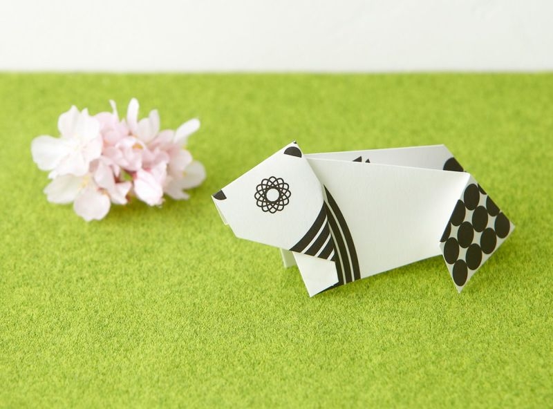 折り筋に沿って折っていくと、組み上がる動物にまつわる幾何学模様が、愛らしい表情をつくります。