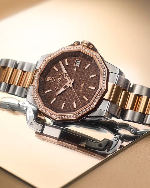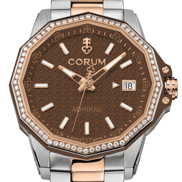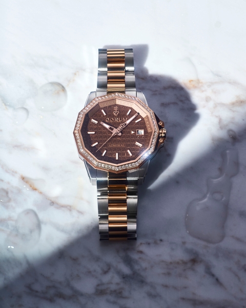 スイス高級時計ブランド CORUM(コルム)が、『アドミラル 38 オートマティック』を、5月9日(木)に全国の正規販売店で発売します。グレード5チタン・5N18Kローズゴールドのコンビネーションと、円熟した色気を感じさせるブラウンのエンボスダイアルが特徴です。