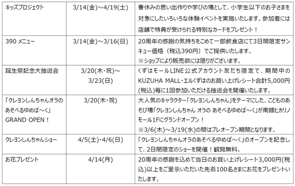 自然や家族だけでなく、20周年を迎えるKUZUHA MALL自身がこれからも地域に愛され続ける施設として、街の暮らしや家族の幸せを支えるためにますます成長していく思いを表現します。