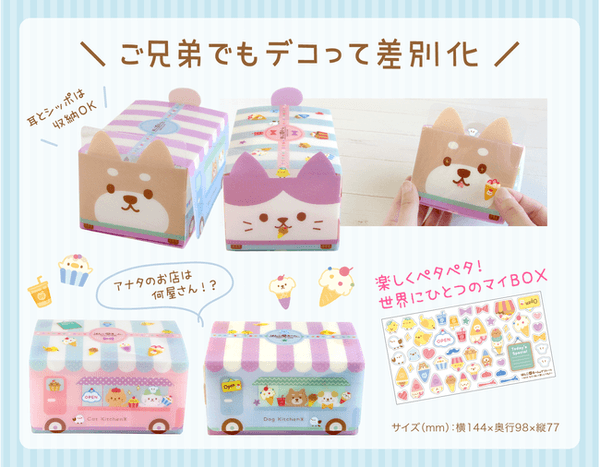 イラストスタンプとケースは、すべて当店のイラストレーターとデザイナーが作成したオリジナルです。デコシールつきのかわいい収納ケースもポイントです。