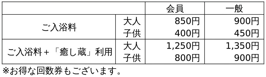 ■つかしん天然温泉「湯の華廊」利用料金について