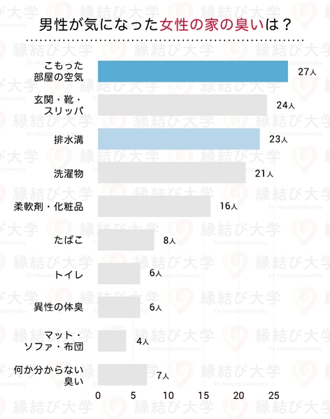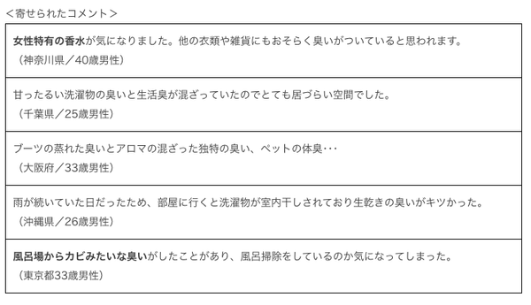 「洗濯物」は、防犯上の理由で部屋干しする女性が多いことから、臭いの発生源になっているようです。