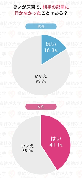 「異性の部屋の臭いが原因で、相手の部屋に行くことを避けたことはありますか?」という質問に、女性は41.1%もの人が「はい」と回答しています。