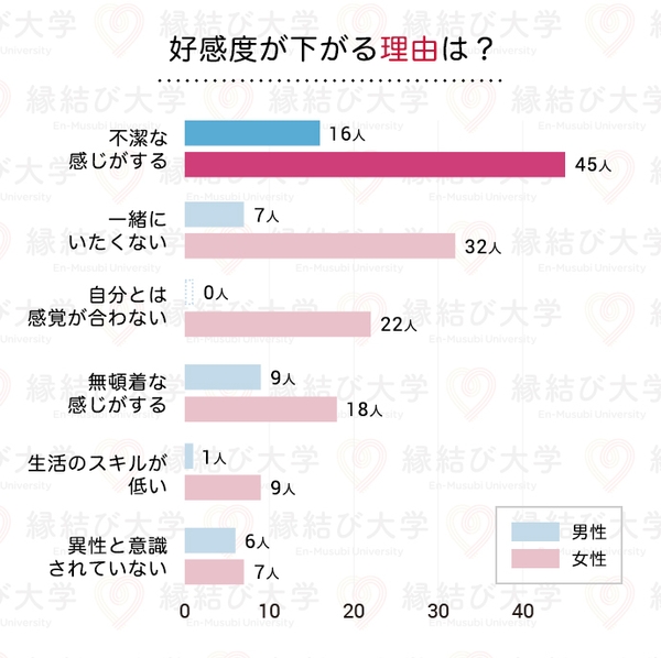 女性の回答で次に多かったのは、「一緒にいたくない」「自分とは感覚が合わない」「無頓着な感じがする」。