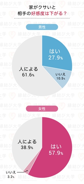 部屋の臭いが原因で、相手への好意や関係性を見直す可能性があることが分かります。