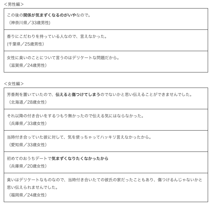 臭いのことを伝えなかった理由は「相手を傷つけるから」
