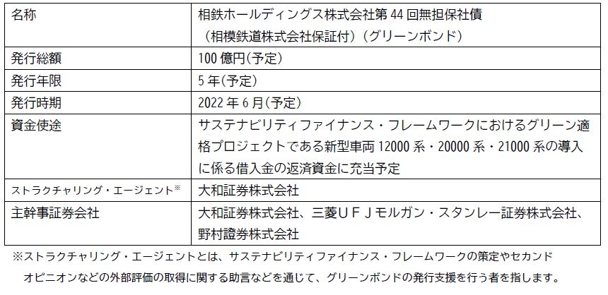 相鉄ホールディングス株式会社(本社・横浜市西区、社長・滝澤 秀之)は環境と社会双方の課題解決に資する事業の資金調達のため、サステナビリティファイナンス・フレームワークを策定し、当フレームワークに基づき、当社初のグリーンボンド(以下、本社債)を2022年6月に発行します。