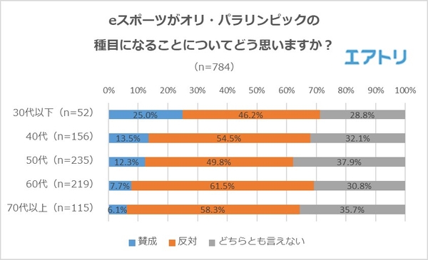 先日、香川県議会が18歳未満のスマホやゲームの時間を規制する「ネット・ゲーム依存症対策条例」の素案を発表したことが話題となりました。その一方で、ゲームは“eスポーツ”と名称を変え、若者を中心に世界中で熱烈な支持を得ています。そこで、eスポーツに対する意見が年代によってどのように変化しているか調べました。