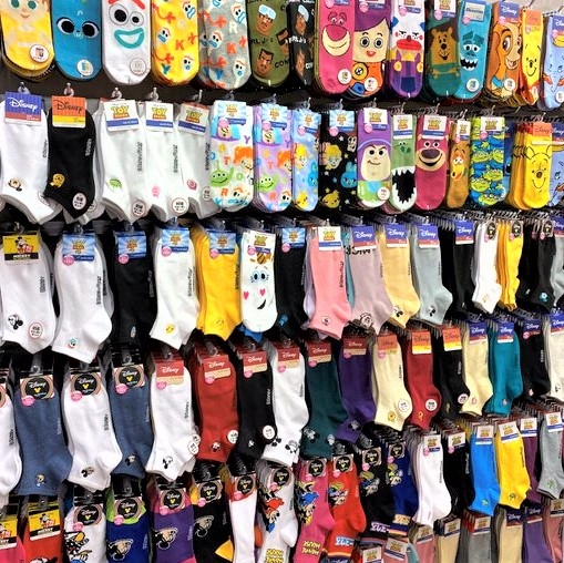 大人気キャラクターのデザインや、シーズンごとに発売される新作など、充実したソックスが組合せ自由!