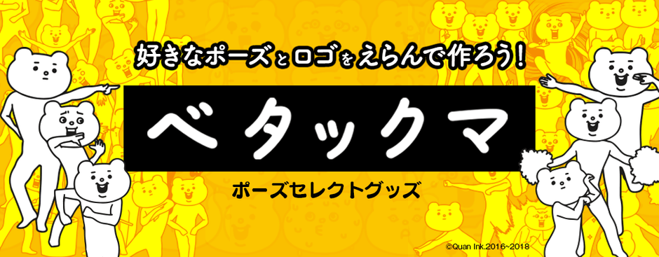 今回のポーズセレクトグッズでは、ベタックマのスタンプに使用されているイラストの中から40種、ロゴデザイン7種を素材として用意しました。生活者は用意された素材の中からイラストとロゴを組み合わせ、合計250種以上のバリエーションの中から好きなデザインのTシャツやトートバッグを作り、購入することができます。