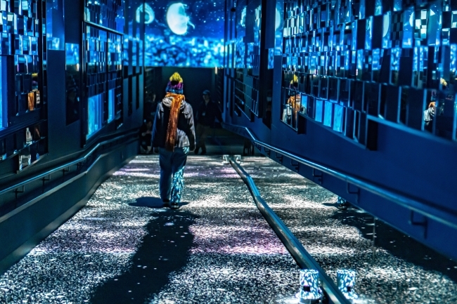 「Smart Touch System」を導入することによって、映像が人の動きに合わせて変化するインタラクティブ演出を取り入れることが可能となり、降り積もった雪の上を実際に歩いたかのように足跡がついたり、水の上を歩くと足跡が波紋になって広がったりと、空間全体で季節や自然を感じながらクラゲ観賞をお楽しみいただけます。