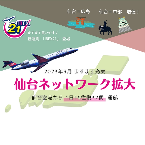 アイベックスエアラインズ株式会社(本社:東京都江東区、代表取締役社長:前澤 豊、以下IBEX)は、2023年夏ダイヤ期間(2023年3月26日(日)~10月28日(土)ご搭乗分)の航空券の販売を開始しました。