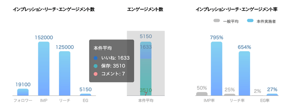 上記数値は、弊社インフルエンサー(フォロワー数19,100人)の実数値です。