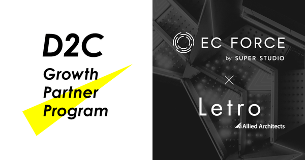 アライドアーキテクツとSUPER STUDIOは、D2Cモデル企業の支援にむけた戦略的パートナーシップを締結。「D2C Growth Partner Program」の提供を通して、D2Cモデル企業の「顧客起点」シフトを実現し、高速な事業成長を支援してまいります。アライドアーキテクツはこれまでにダイレクトマーケティング特化型UGC活用ソリューション「Letro」を通して、D2Cメーカーや通販企業へのマーケティング支援実績を多数作ってまいりました。また、SUPER STUDIOは、D2Cビジネスモデルに特化したEC基幹システム「EC Force」やD2C商品の企画開発の支援を通して、ECの幅広いご支援をしております。今回のパートナーシッププログラムを通して、2社の知見を融合・連携することで、より高品質なご支援とノウハウ発信を推進してまいります。