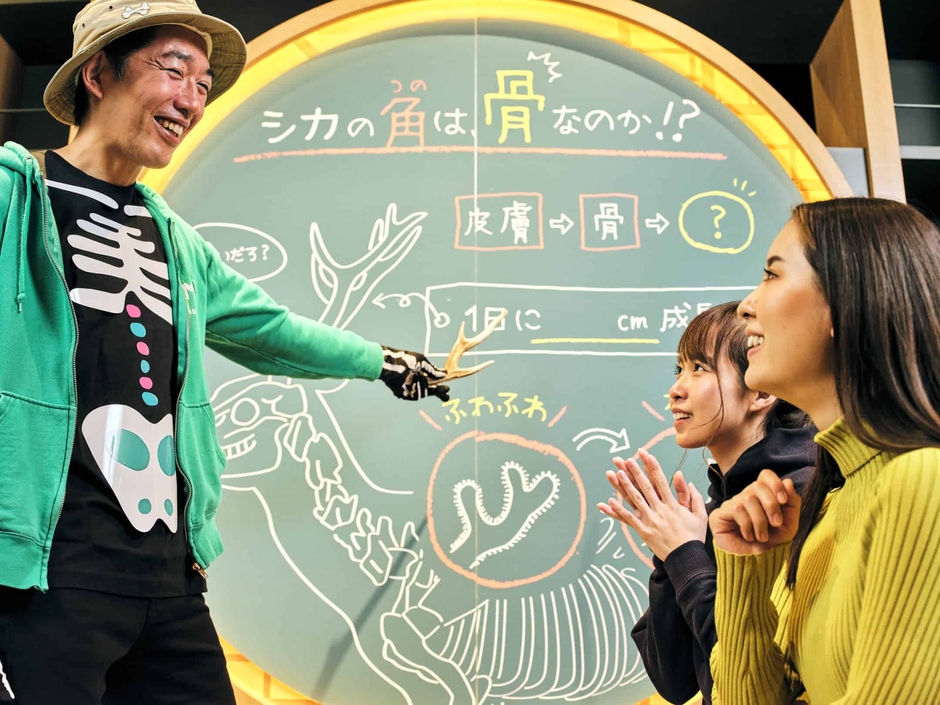 本イベント開催中の旭山動物園講座*は、動物の骨をテーマにした「骨の話しかしない、旭山動物園講座」を開催します。短足に見えるペンギンが骨で見ると実は足長だったり、キリンの首の骨の数は人間と一緒だったりと、普段は見えない骨には動物の生態を知る面白さが詰まっています。講座では、OMO7旭川のスタッフが骨を切り口にした動物の話や、旭山動物園に点在する「ほねほねパネル」について語ります!翌日、旭山動物園に行ったら、動物の可愛さよりも骨が気になってしまうかも?