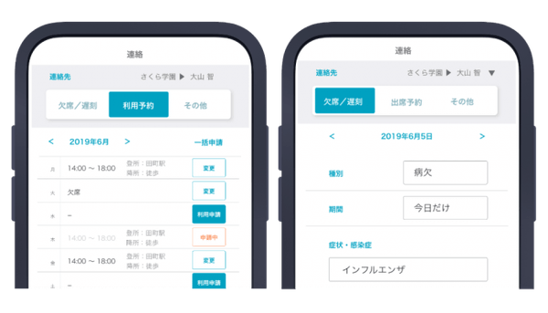 従来の電話や連絡帳ノート経由での登降所時間の予約・申請受付を、専用の保護者アプリを使ってペーパーレス化。