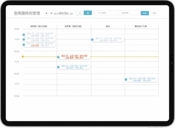 出席簿に加え、送迎に関するミスを確実になくすために、「登降所予定表」も自動作成されます。