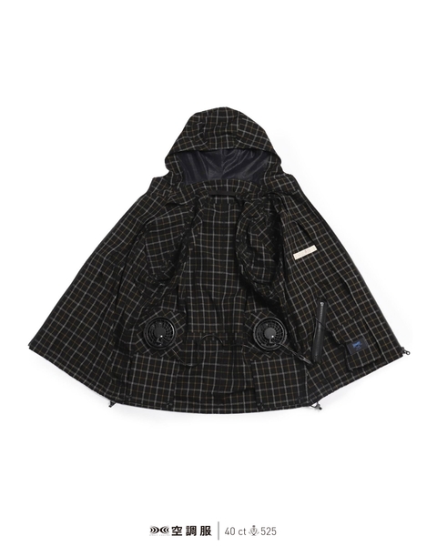 シャツは天然繊維にこだわったコットンタイプタイラー生地を採用。ボタンダウンシャツ特有の清潔感のある佇まいに。ブルゾンタイプはコットンチェックウェザー生地を採用。腕の可動域を広げる工夫を凝らしたキモノスリーブと比翼仕立てのジップアップフロントに加え、頭の形に沿いつつ空気の流れを考慮したフードなど、緻密なパターンメイキングを駆使したつくりが特徴。またゆとりを持たせたサイジングは、空気が入った際に十分風が流れるように設計され、随所に付属するパーツにより調整が可能です。
