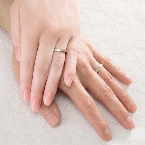 『Hishime TSUNAGI -菱目繋ぎ-』は、純金で出来た菱型のピン=“菱目”で、輪をつなぐセレモニーを行う結婚指輪です。トンカチを使ってご自身で“菱目”を打ち込む瞬間は、一生忘れることのない想い出に。セレモニー後、職人が綺麗な指輪に仕上げ、完成します。