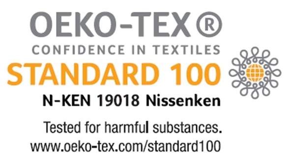 「エコテックス®スタンダード100」は、生産される繊維製品の中に、人体に悪影響を及ぼす化学物質などが含まれていないことを証明する国際的な安全基準です。繊維製品で使用が規制されている化学物質は、日本の法律では40種程度であるのに対して「エコテックス®スタンダード100」の基準では350種以上あり、さらにその対象は縫製糸やボタンなど、製品に使用するもの全てに至ります。この認証は、世界トップクラスの厳しい検査基準を満たす製品だけに与えられる“安心・安全”の証として世界中で注目されています。