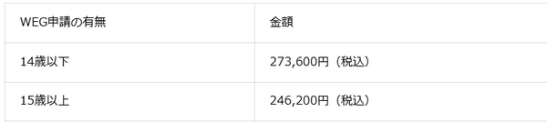 ※14歳以下の方はWEG申請手続きが必要となるため、代行費用が発生いたします。