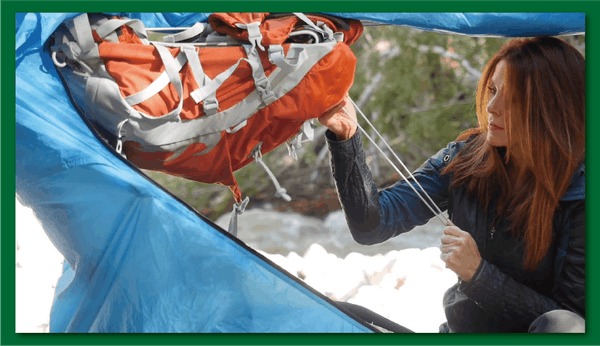 バックパックを内部に吊るすことで、バッグの中身も簡単に取り出せます。