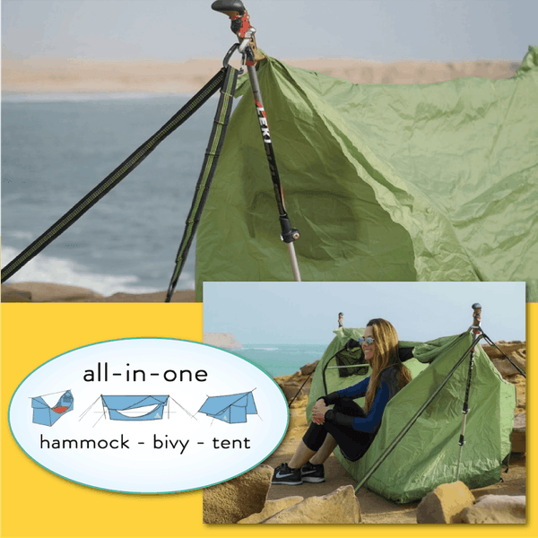 アウトドアをこよなく愛する米国人発明家が生んだ、テントとハンモックのいいとこ取りをしたアイテムです。