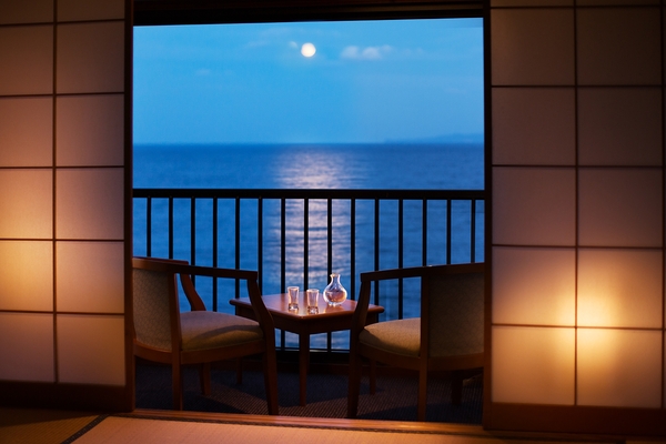 海面に描かれるムーンロードや朝日に輝く海を眺めながら、夕食や朝食をお楽しみいただけます。