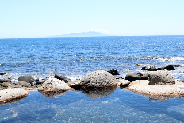 海と一体になれる海抜 0 メートルの絶景公共露天風呂。まるで海に入っているかのような臨場感 です。