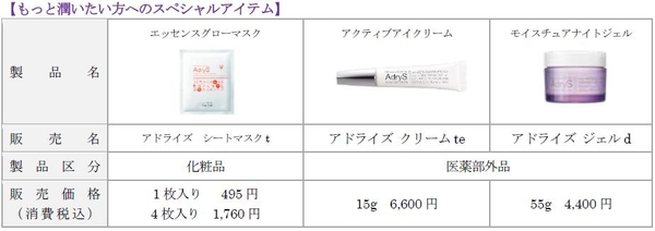 「アドライズ」は、季節を問わず肌の乾燥に悩む女性や、年齢を重ねるごとに深刻化する肌の乾燥に悩む女性を、その悩みから解放したいという一途な思いから大正製薬が長年の研究によって生み出したスキンケアブランドで、保湿と美白※1のW薬用有効成分を配合した「アドライズ アクティブローション」をはじめ、乾燥肌の悩みに寄り添い、保湿にこだわった製品開発をしています。