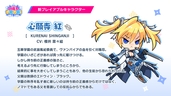 株式会社Gremory(本社:大阪市中央区、取締役社長:武山英治)より、『対魔忍GOGO!』において、新対魔忍「心願寺紅」の登場と新イベント「文化祭パトロール」開催とクリアランクシステムの対象クエスト追加実装をお知らせいたします。