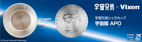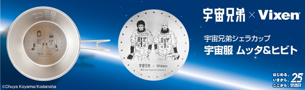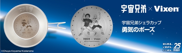 宇宙へと夢を馳せる「宇宙兄弟」の壮大な世界観と、その宇宙を実際に楽しむためのアイテムである天体望遠鏡や双眼鏡のメーカーであるビクセン。これらがつながり、今回のオリジナルシェラカップの製造、発売となりました。