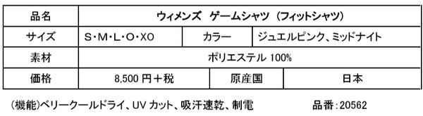 2020シーズンのウェアは、汗に反応して熱を吸収するキシリトールを生地に配合し、ウェア内の温度を約3℃低く保つベリークールと、汗を素早く吸収・拡散させて乾燥を促進させる生地構造を併せ持った素材「ベリークールドライ」を使用。さらに、今までよりもなめらかでストレッチ性に優れた生地を採用することにより、運動機能性と着心地を向上させました。