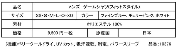 また、腕を上げやすく、肩周りの突っ張り感を軽減させた形状(カッティング)などを使用し、選手のパフォーマンスを高める機能を搭載しています。