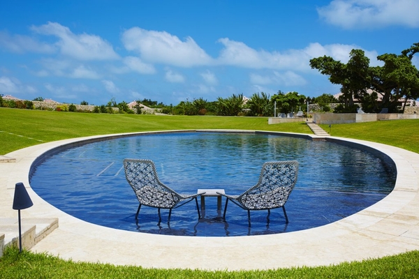 星のや竹富島の中心には24時間いつでも利用可能な開放感あふれるプールがあります。昼は青空の下水浴びをしたり、夜には満天の星を望んだり思い思いの時間を過ごせます。