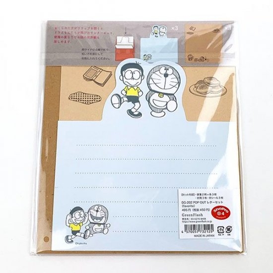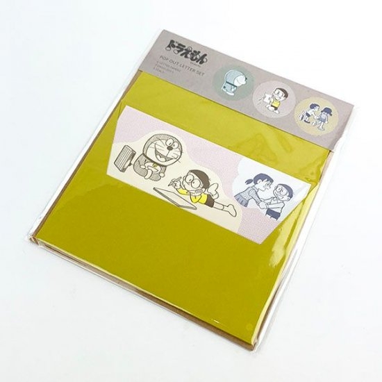 封筒と便箋がセットになったこちら。涙目のしずかちゃんが印象的。これはコミックのどこかで見たシーン!?封筒を開けた瞬間、ドラえもんの世界に引き込まれちゃう☆