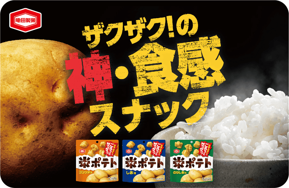 “お米”と“ポテト”が融合することで、既存のスナックには無いごろっとザクザクした噛み心地の良い食感と、既存の米菓には無い後引くじゃがいもの味わいを持った新しいスナックが誕生しました。