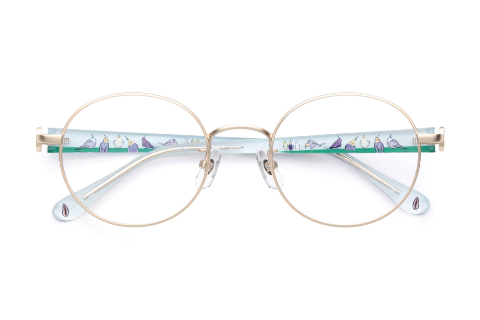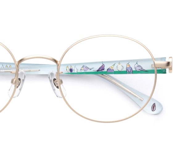鳥好きのためのメガネフレーム。鳥たちの日常をカラフルなイラストで表現しています。小鳥を飼っている人は「あるある!」と共感し、そうでない人でも「かわいい!」と思わず感じてしまうしぐさなど鳥の魅力をぎゅっと詰め込んでいます。