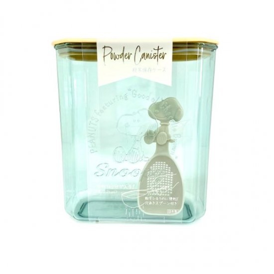 淡いブルーグリーンがキレイな、粉末保存ケースです。スッキリとシンプルなたたずまいですが、中央にはちゃんとスヌーピーが存在感を出しています。