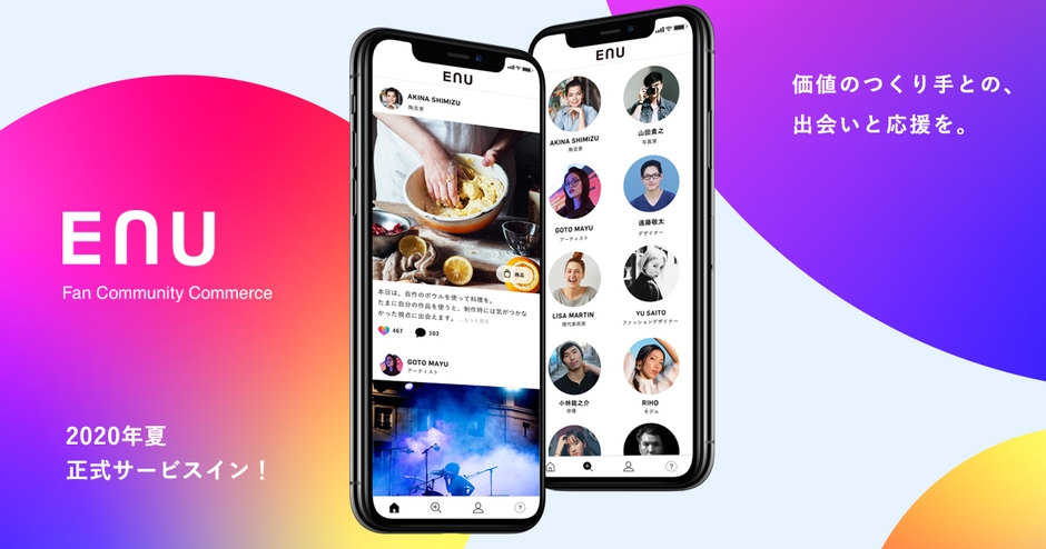 ワントゥーテン、価値のつくり手と出会い、応援ができるあたらしいCtoCコマースプラットフォーム ファンコミュニティコマース 『 ENU 』発表