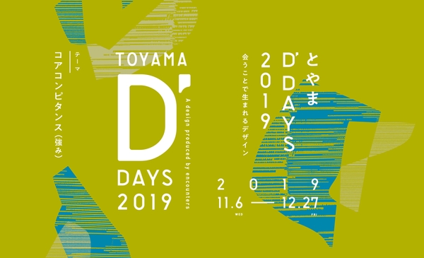 富山県は、富山県総合デザインセンター一帯を総合的なデザイン交流ゾーンとして国内外に発信し、県内先端ものづくり企業のデザイン活用・デザイン思考による製品開発を推進していくため、2019年11月6日(水)〜12月27日(金)の期間、「とやまD’DAYS(ディー・デイズ)2019」を開催します。