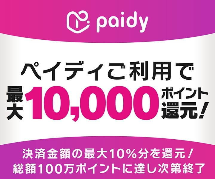 ・キャッシュバックは、決済画面でペイディを選択した場合のみ対象です。ペイディカードの利用は対象外となります。