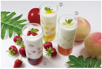 食べて飲むヨーグルトドリンク (1)イチゴ (2)マンゴー (3)白桃