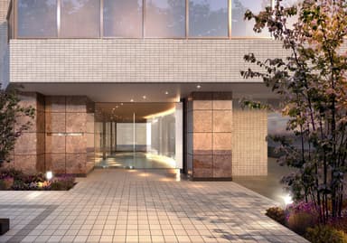 アースカラータイルでエレガントさを演出し、美と気品を極めた、造形美に。また、優しさと品格で柔らかな曲線を描いたエントラスが住まう人を迎え入れます。
