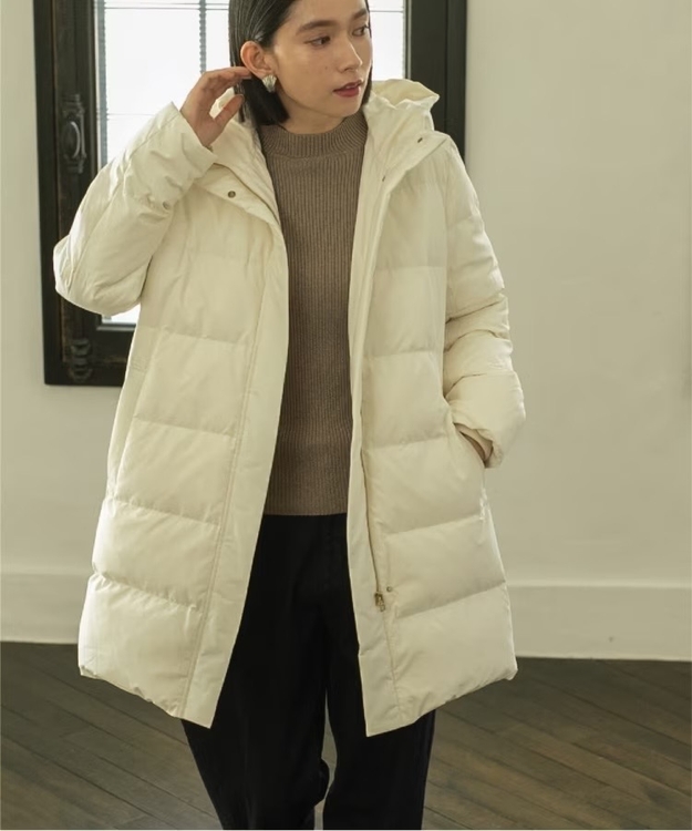 ◆「ミュラーダウン」フードミドル丈コート